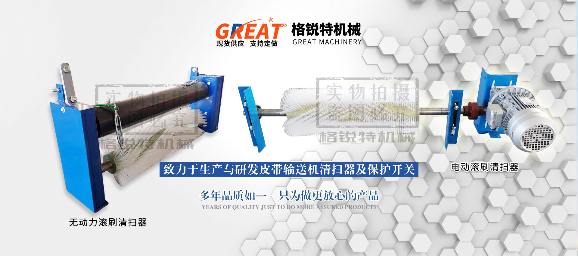 衡水格銳特機械科技有限公司常年致力于生產與研發皮帶輸送機清掃器及保護開關,其中主營聚氨酯清掃器,合金清掃器,電動滾刷清掃器,機械式滾刷清掃器,緩沖床,緩沖條,雙向拉繩開關,兩級跑偏開關,打滑檢測器,料流檢測器等保護開關,常年銷往各大水泥廠,煤礦廠,電廠,輸送機廠家,質量優越,價格實惠,望各大領導及同行來廠參觀指導,期待您的光臨?。。?/p>